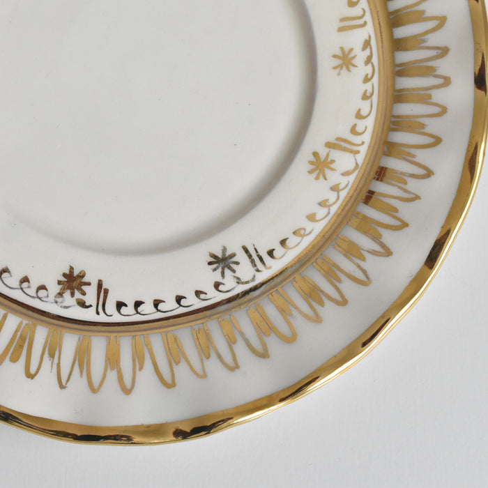 A.Dressinval 70年代、フランス・ブルゴーニュ地方で釜を持っていた陶芸家です。 全て手作業で作られ、作家の息遣いが感じられる細やかな金の装飾が魅力的です。 小さな丸い模様が、ブルゴーニュ地方のぶどう畑を連想させます。