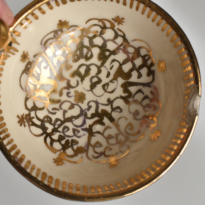 金彩で描かれたリズミカルな模様。ハンドペイントの躍動感が魅力の一つです。 仕舞い込まず飾って楽しみたくなる素敵なシリーズです。 ミニカップは食後のリカー用のカップです。アクセサリーを入れたりすると素敵です。