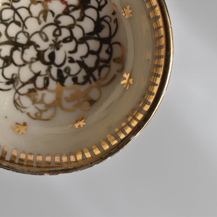 金彩で描かれたリズミカルな模様。ハンドペイントの躍動感が魅力の一つです。 仕舞い込まず飾って楽しみたくなる素敵なシリーズです。 ミニカップは食後のリカー用のカップです。アクセサリーを入れたりすると素敵です。