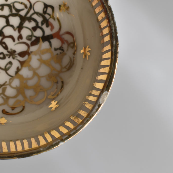 A.Dressinval 1954年から1976年まで、フランス・ブルゴーニュ地方で釜を持っていた陶芸家です。 全て手作業で作られ、作家の息遣いが感じられる細やかな金の装飾が魅力的です。 小さな丸い模様が、ブルゴーニュ地方のぶどう畑を連想させます。