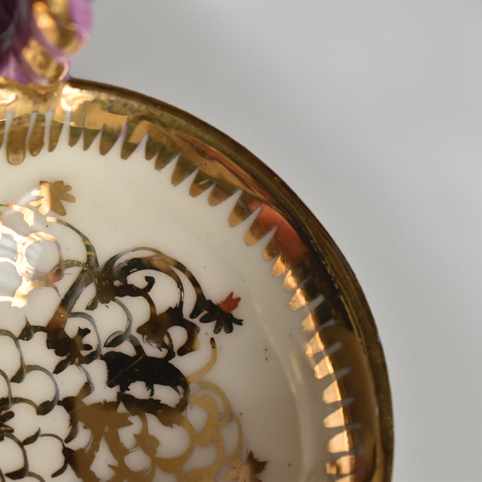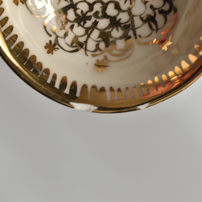 A.Dressinval 1954年から1976年まで、フランス・ブルゴーニュ地方で釜を持っていた陶芸家です。 全て手作業で作られ、作家の息遣いが感じられる細やかな金の装飾が魅力的です。 小さな丸い模様が、ブルゴーニュ地方のぶどう畑を連想させます。