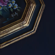 フレーム内には、花が描かれた小さな油絵がはめこまれています。