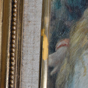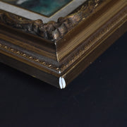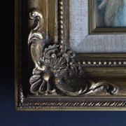 繊細な彫刻が施されたゴールドの木製フレームが、作品をより一層華やかに引き立てます。布張りのライナー(マット部分)とネームプレートが、クラシックで高級感のある佇まいを演出します。