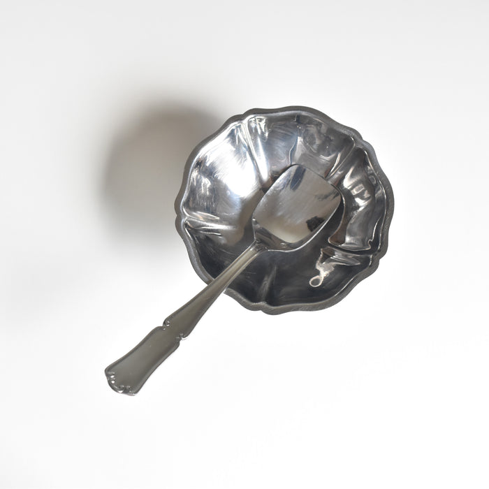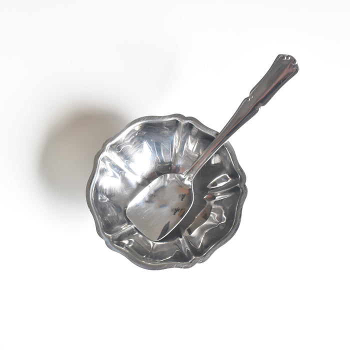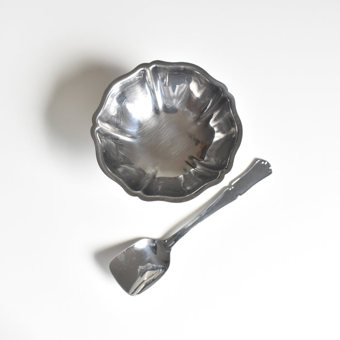 ヴィンテージ ステンレススチールのアイスクリームクープとスプーンです。