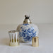 野原に咲く花々が生き生きとダイナミックに描かれ小さいながらも存在感のある一品です。ブルー&ホワイトの清楚な色合いとキャップの優しいゴールドが美しく調和しています。