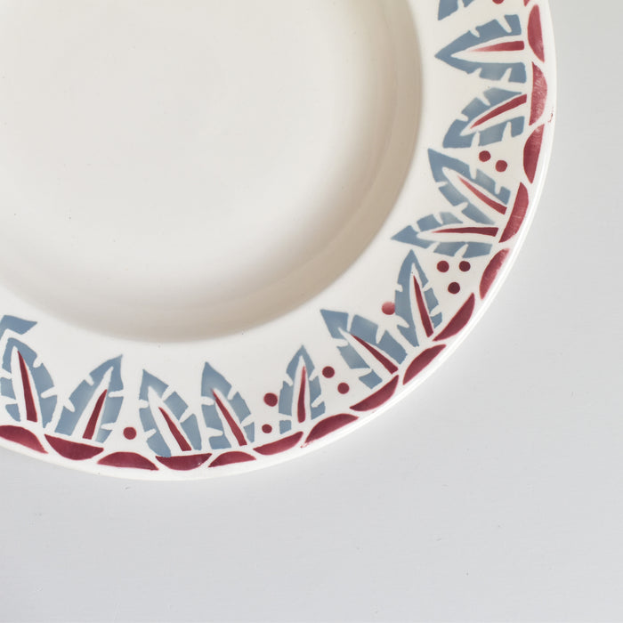 深みのあるバーガンディレッドと、落ち着いたアッシュグレーの2色で描かれたスプレーステンシル模様は、見る人を惹きつけます。