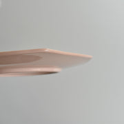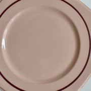 柔らかなサーモンピンクが可愛らしいく、優しい風合いのデサートプレート。ワインレッドの手描きのサークルがワンポイントに。