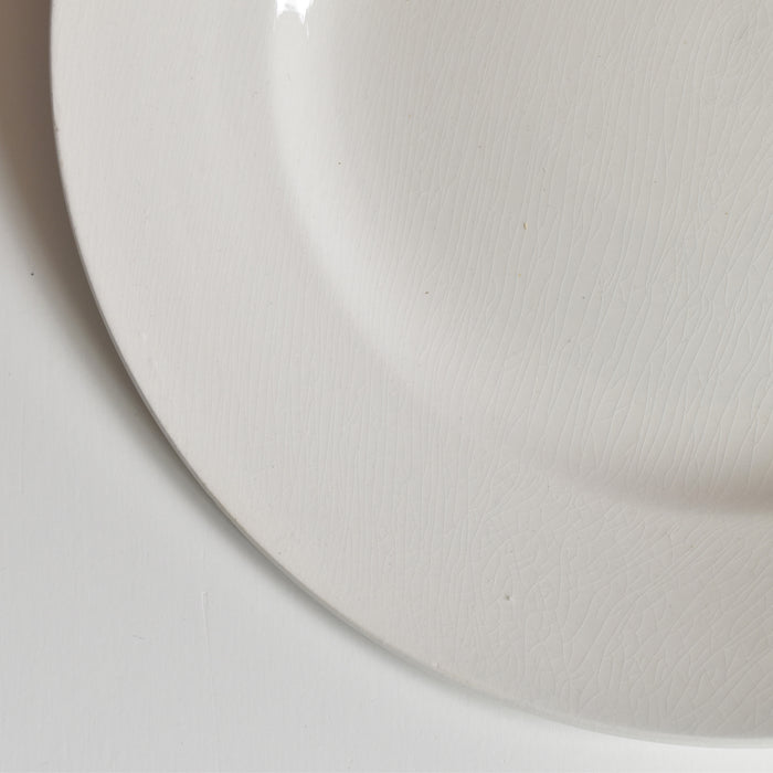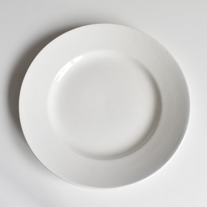 純粋なホワイト一色のなかに、器としての機能美が凝縮されており、滑らかな曲線を描くリムが、全体のフォルムにやわらかな奥行きを与えています。