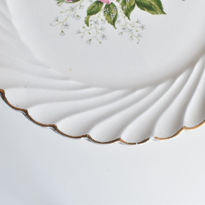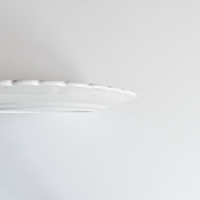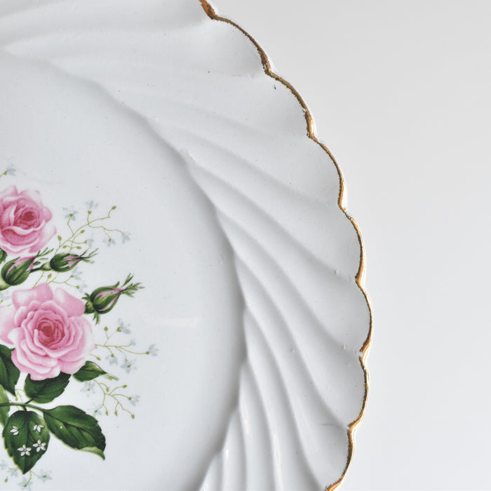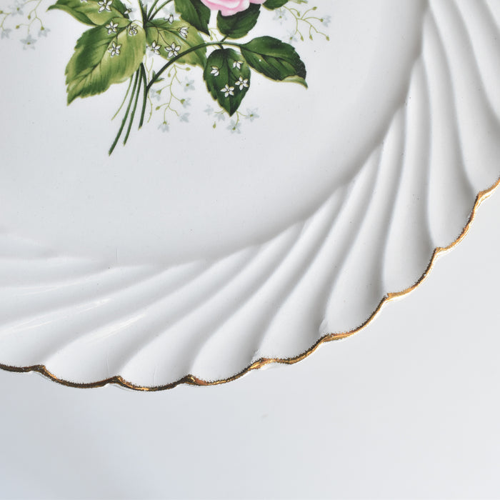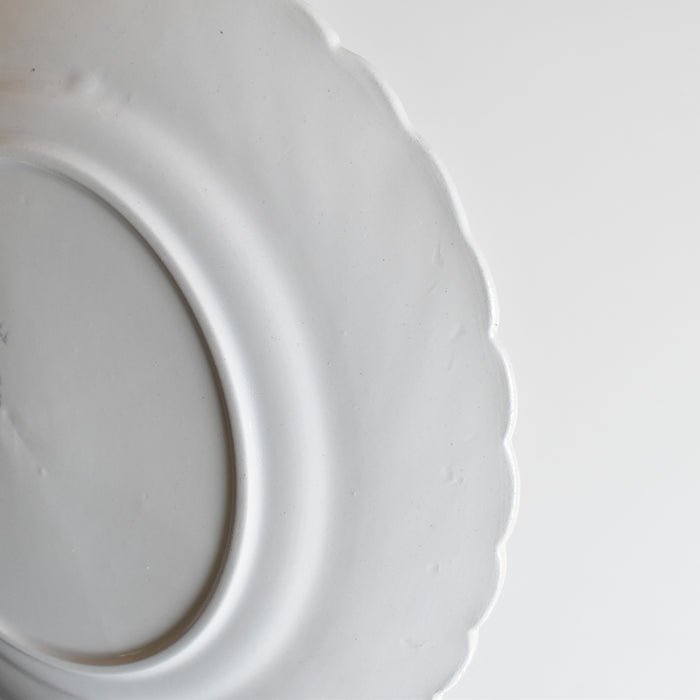 お皿全体を縁取るように施された、緩やかな波のようなレリーフと、上品なゴールドのラインが、さらにその美しさを際立たせています。