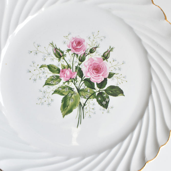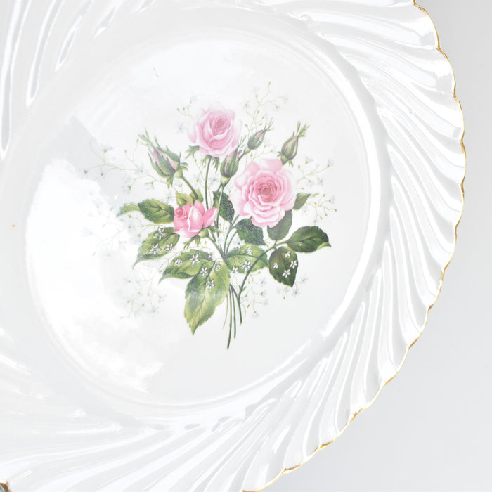 白磁の肌に、淡いピンク色の薔薇と、可憐な白い小花が丁寧に描かれています。