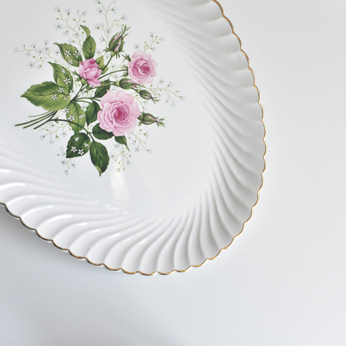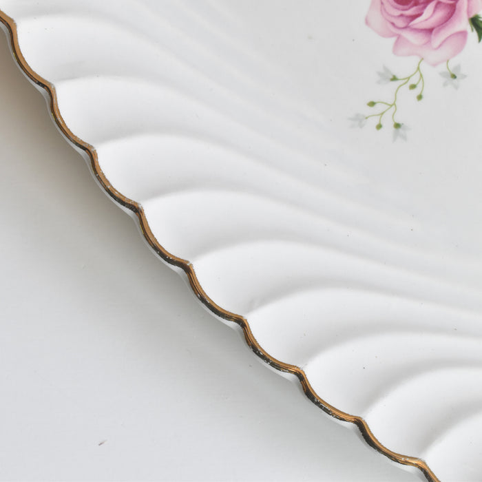 白磁の肌に、淡いピンク色の薔薇と、可憐な白い小花が丁寧に描かれています。