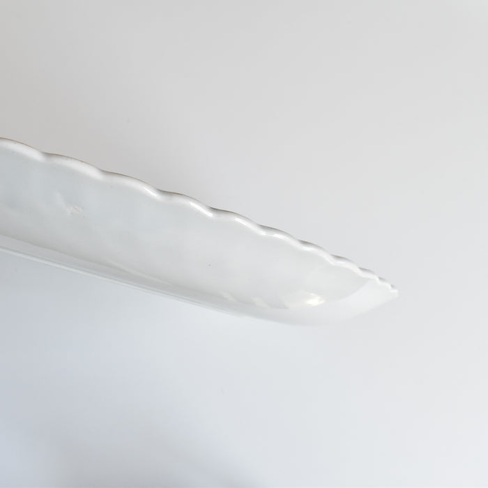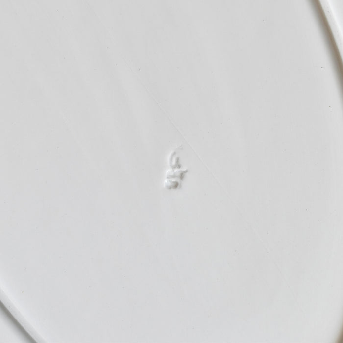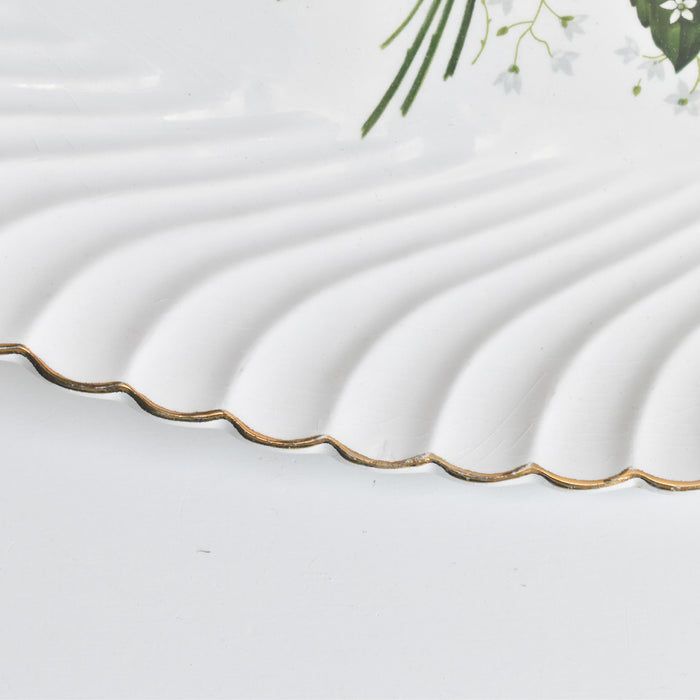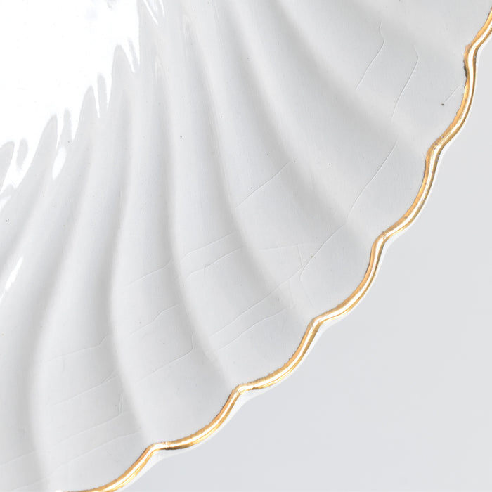お皿全体を縁取るように施された、緩やかな波のようなレリーフと、上品なゴールドのラインが、さらにその美しさを際立たせています。