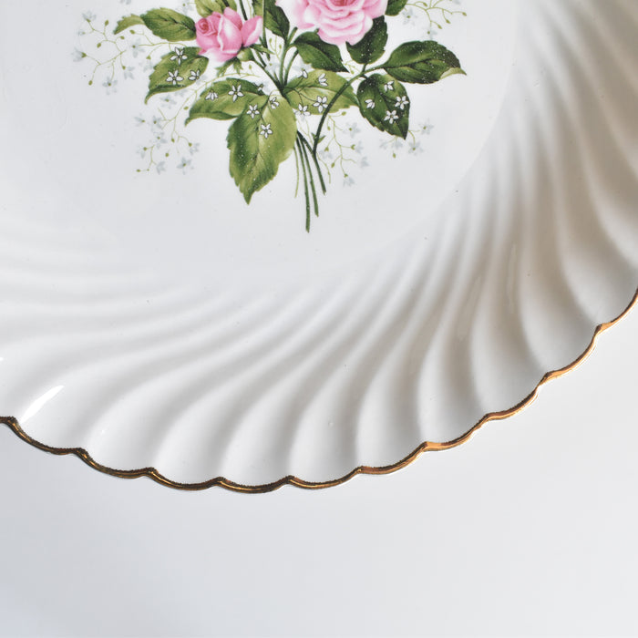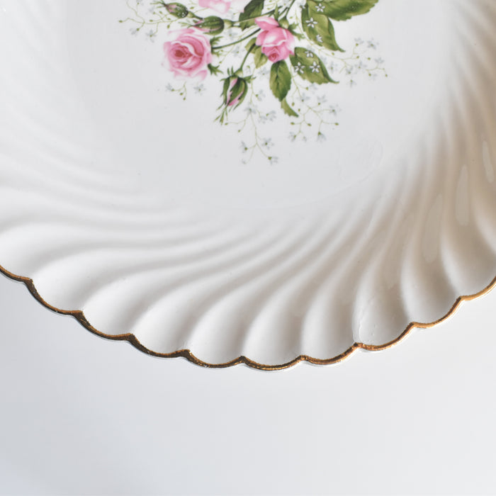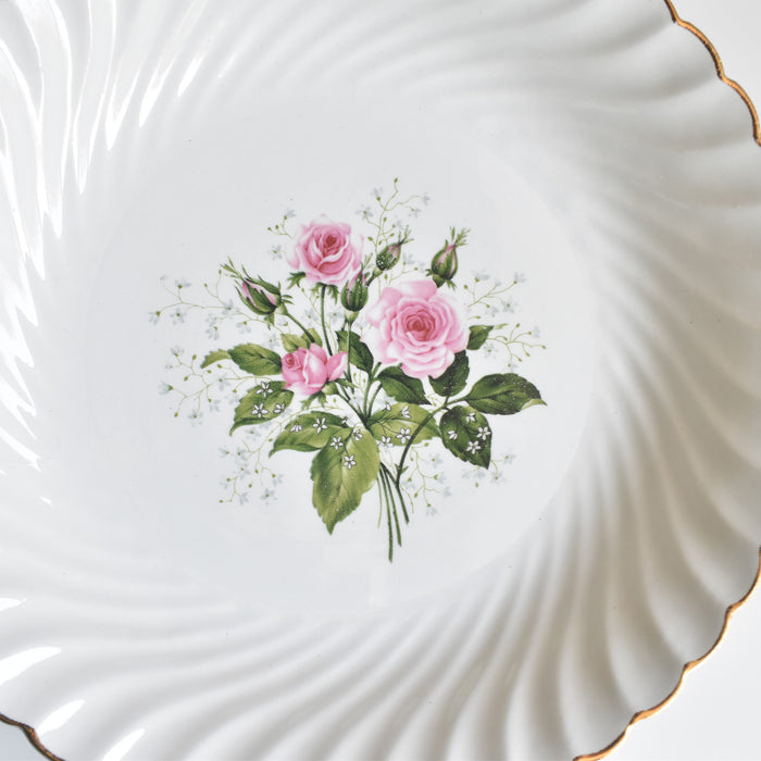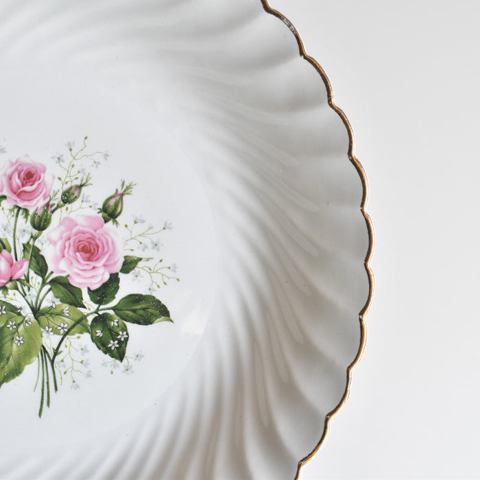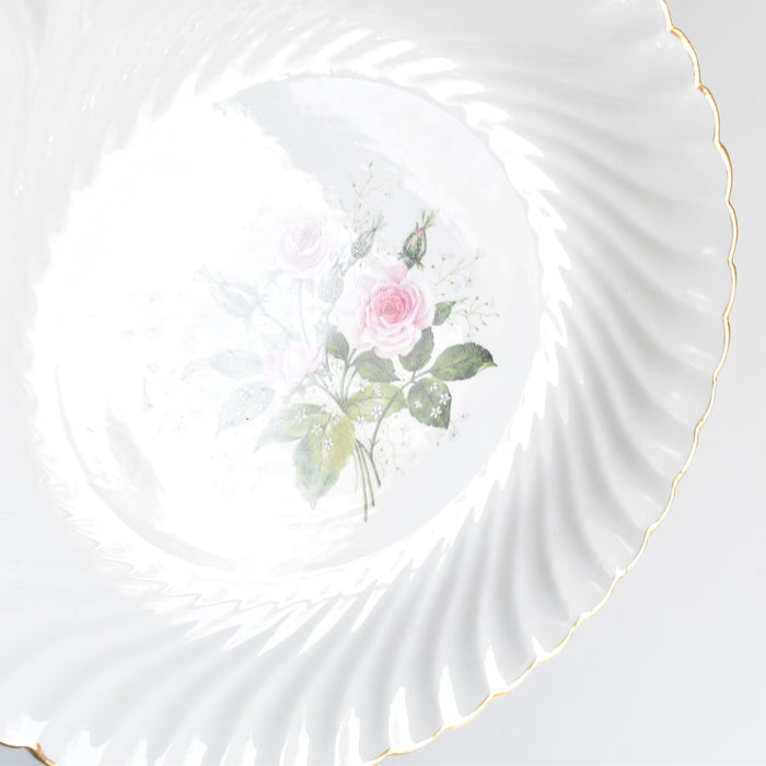 白磁の肌に、淡いピンク色の薔薇と、可憐な白い小花が丁寧に描かれています。