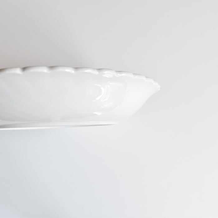 お皿全体を縁取るように施された、緩やかな波のようなレリーフと、上品なゴールドのラインが、さらにその美しさを際立たせています。