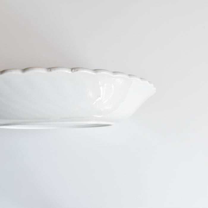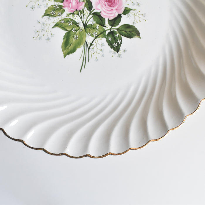 お皿全体を縁取るように施された、緩やかな波のようなレリーフと、上品なゴールドのラインが、さらにその美しさを際立たせています。