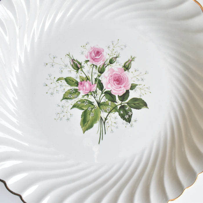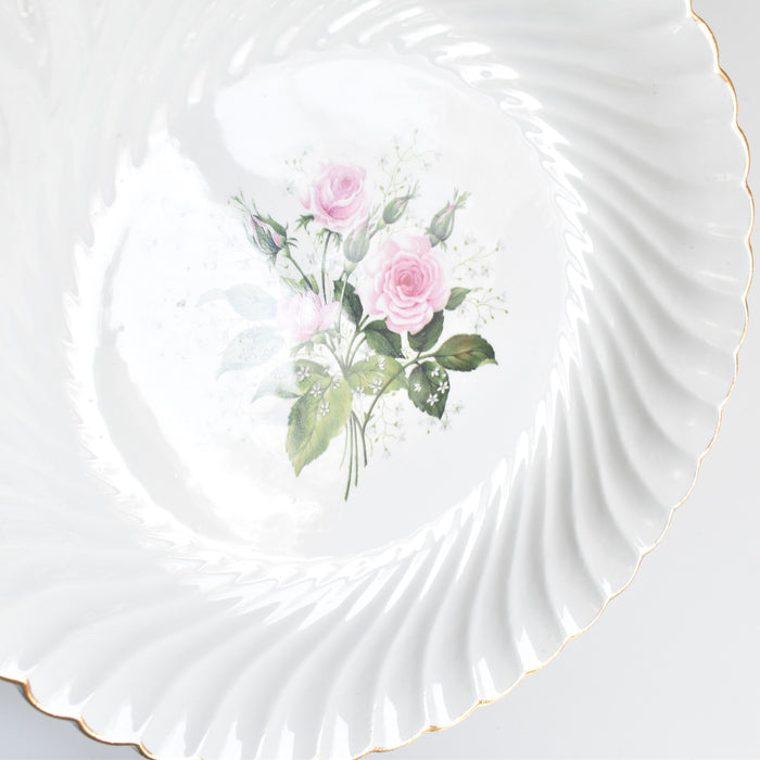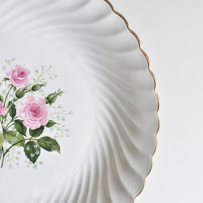 白磁の肌に、淡いピンク色の薔薇と、可憐な白い小花が丁寧に描かれています。