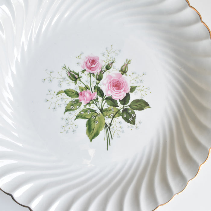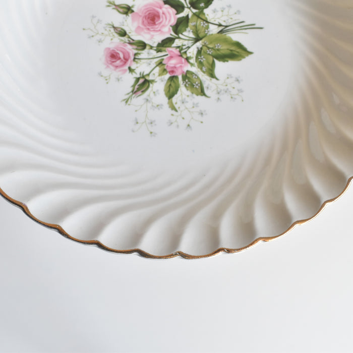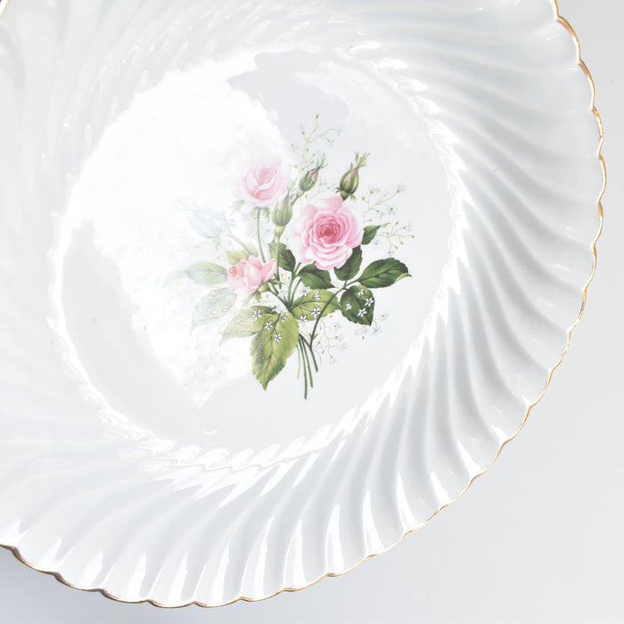 白磁の肌に、淡いピンク色の薔薇と、可憐な白い小花が丁寧に描かれています。