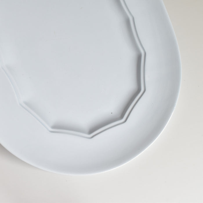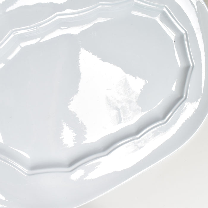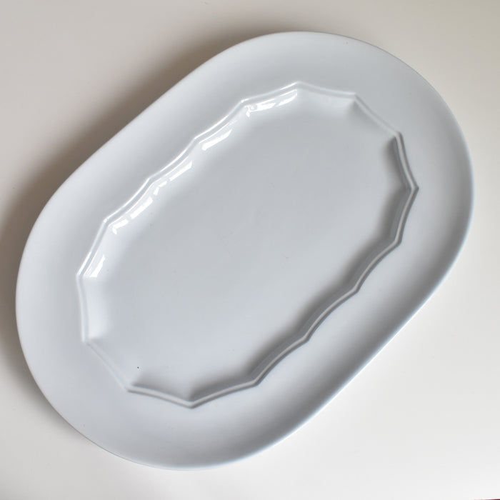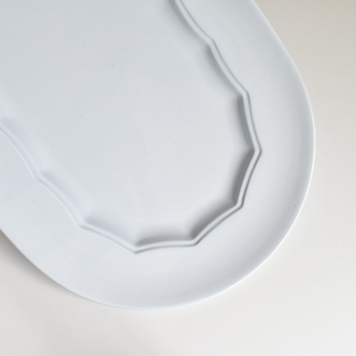 美しい楕円形のサービスプレートです。食卓に広がりと優雅さをもたらす、存在感のある一枚です。