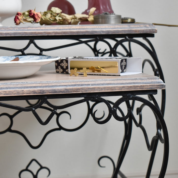 力強いしっかしとしたアイアンの脚ですが、クルンとまあるい曲線が魅力的で脚元は華やかな印象です。