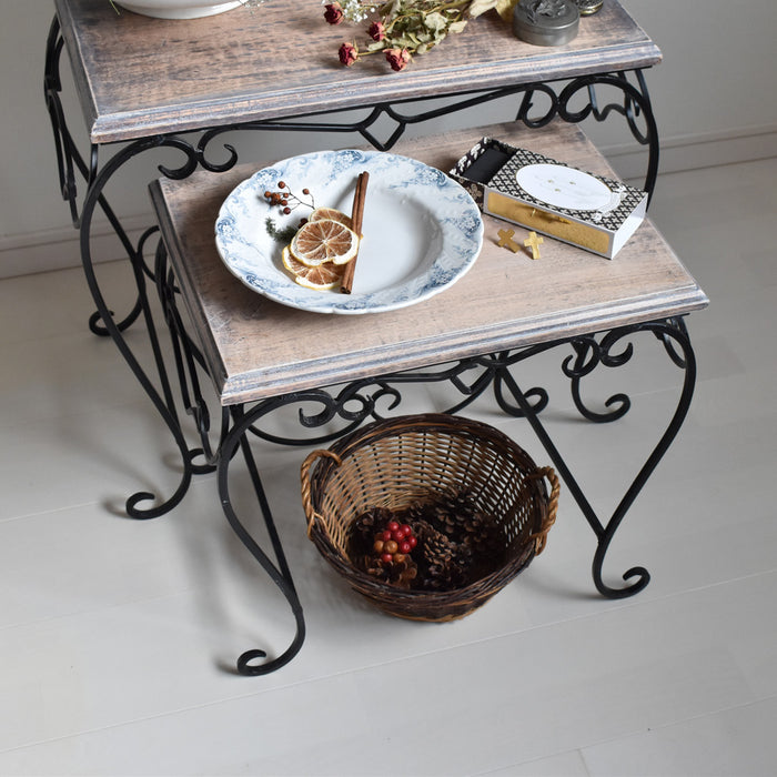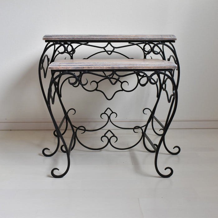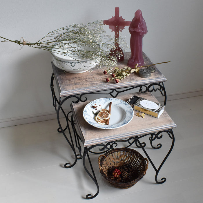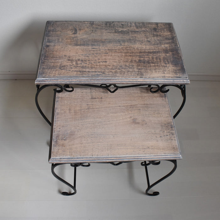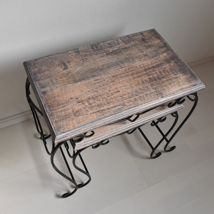 小さい方のテーブルは、大きい方のテーブル下にすっぽりと収まります。
