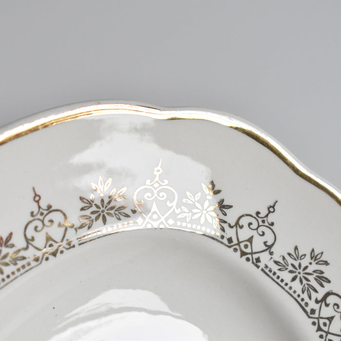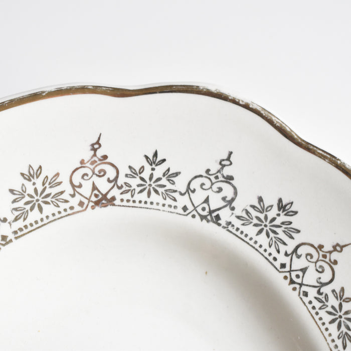 金彩で描かれた細やかで美しいガーランド模様。少しクリーム色がかったプレートとゴールドのコンビネーションが上品です。