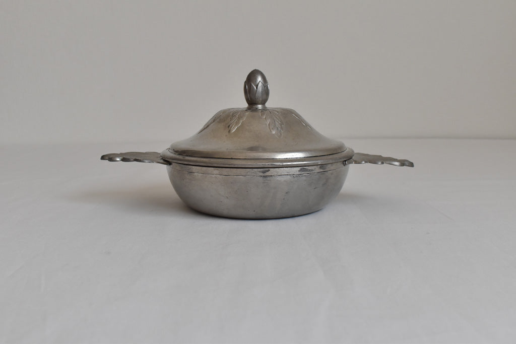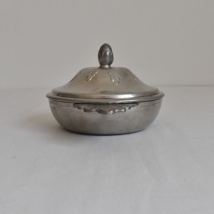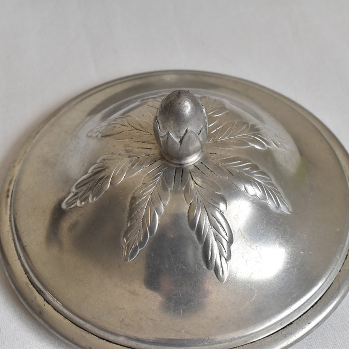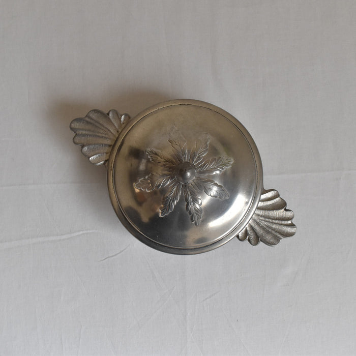 こちらのヴィンテージのボンボニエールは、羽が生えたようはユニークで可愛らしいデザインが魅力的です。蓋には、実や蕾のようなつまみがつうており、作り手の遊び心を感じます。