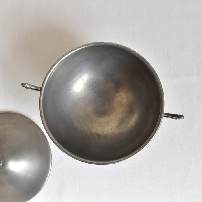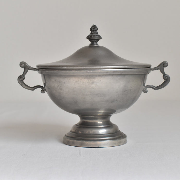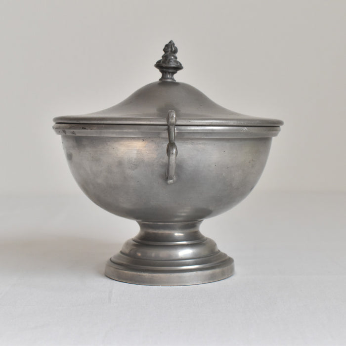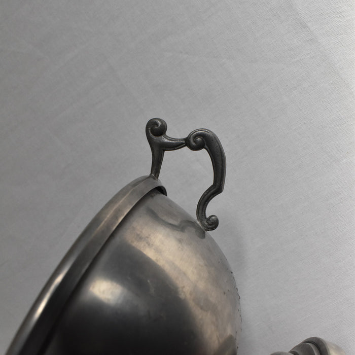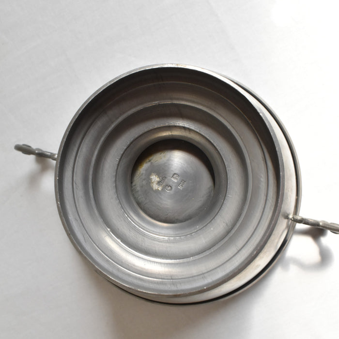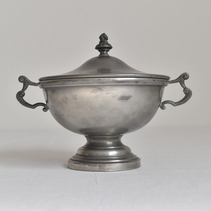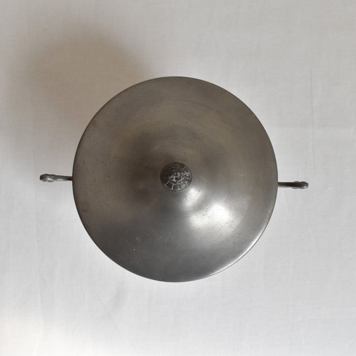 ピューターの小さな傷やくすみが柔らかな光の屈折を生み、温もりを感じます。寝室やリビングなどのインテリアとして人気です。