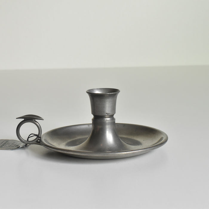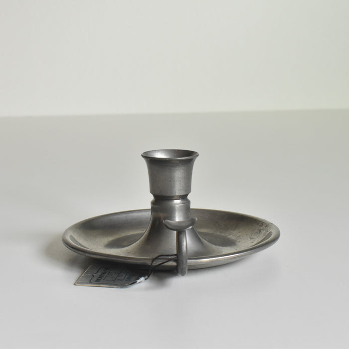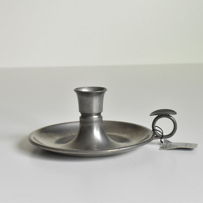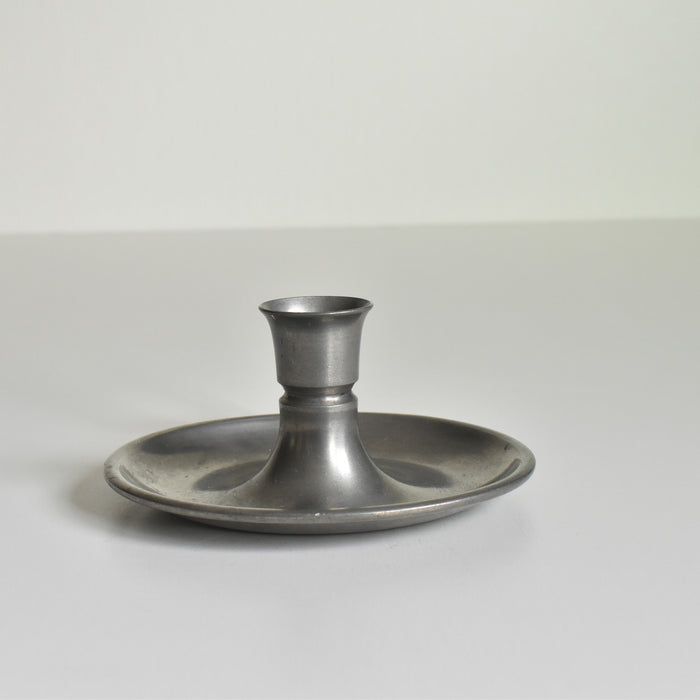 シンプルながら趣のある、受け皿付きのピューター燭台。夜のひとときを、優しい灯りで彩ります。