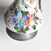 華やかな花柄が描かれた陶器に、重厚なピューターのハンドルと台座を組み合わせたユニークな花瓶。インテリアの主役に。