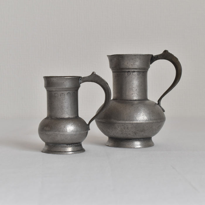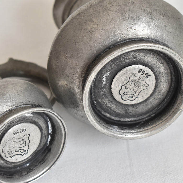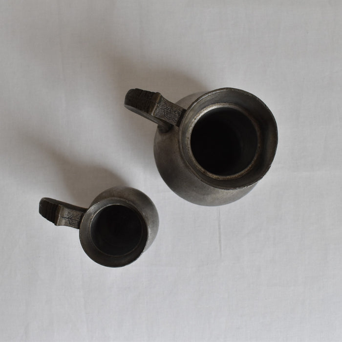ヴィンテージのピューター 計量カップ 2点セットです。