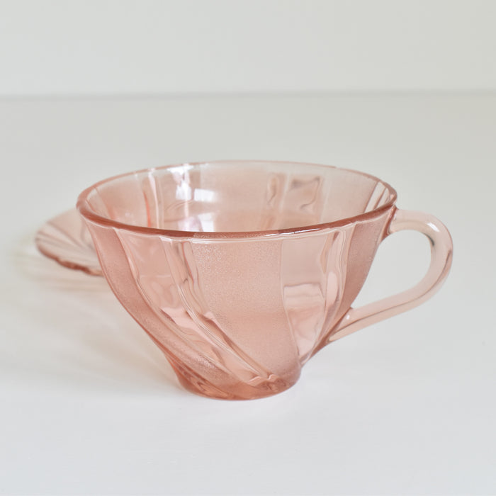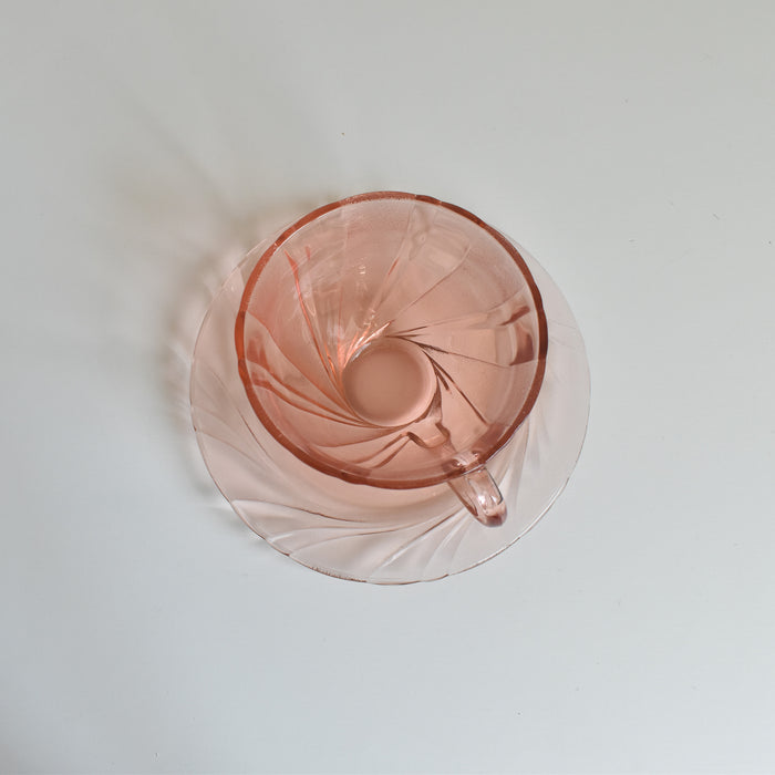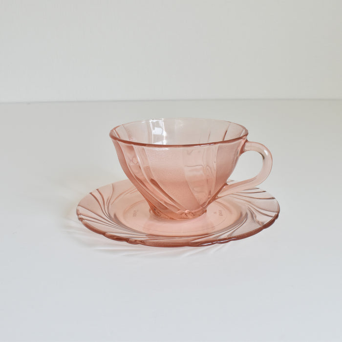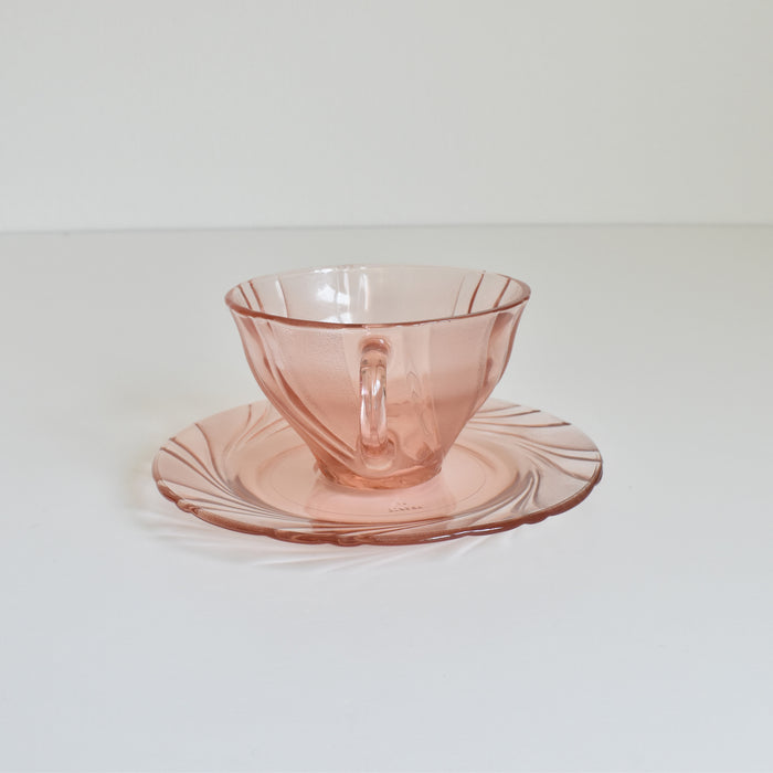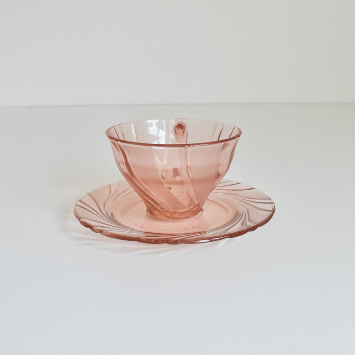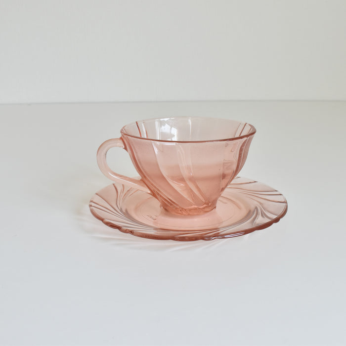 ヴィンテージ ピンクガラス カップアンドソーサー vereco(ベレコ)
