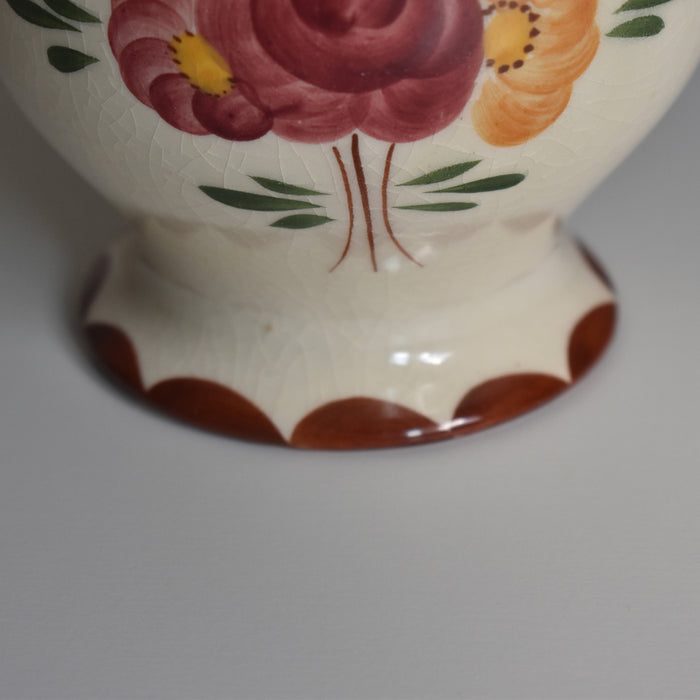 丸みのある可愛いらしいフォルムとハンドペイントの花模様が可憐な印象を与えるピッチャー。