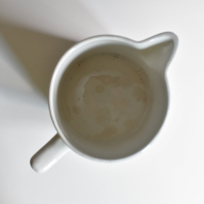 ミルクのように真っ白なピッチャー。シンプルな形が洗練された雰囲気をより感じさせる魅力的なピッチャーです。