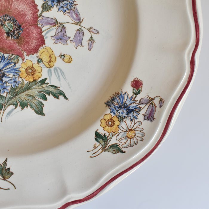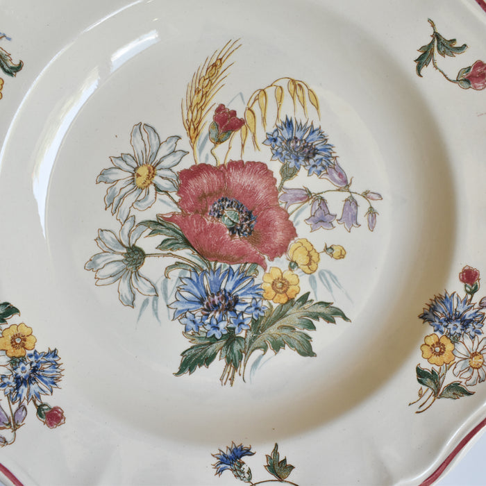 プレートに描かれているポピーやホタルブクロ、アザミや雛菊などのブーケは、フランスの田舎の風景でよく見かける植物ばかり。
