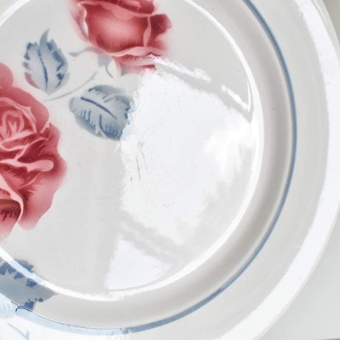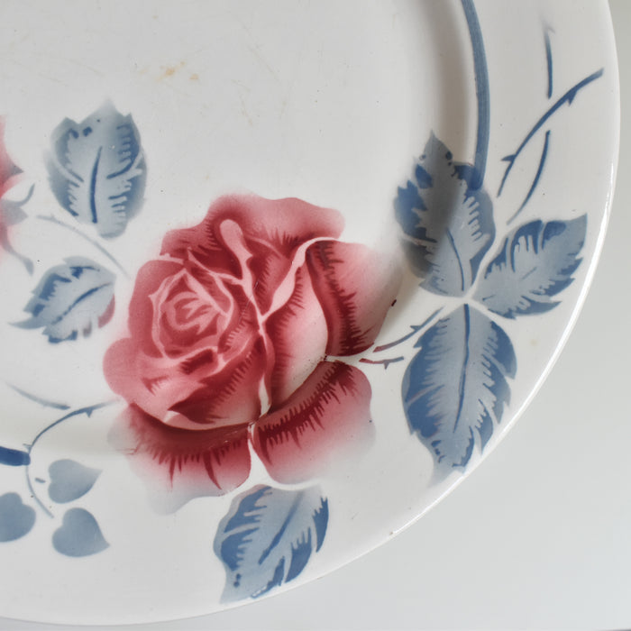 ステンシルの赤いバラと青い葉っぱが綺麗に写っているプレートです。