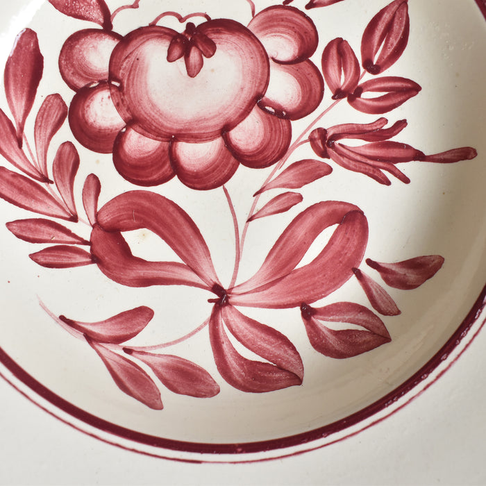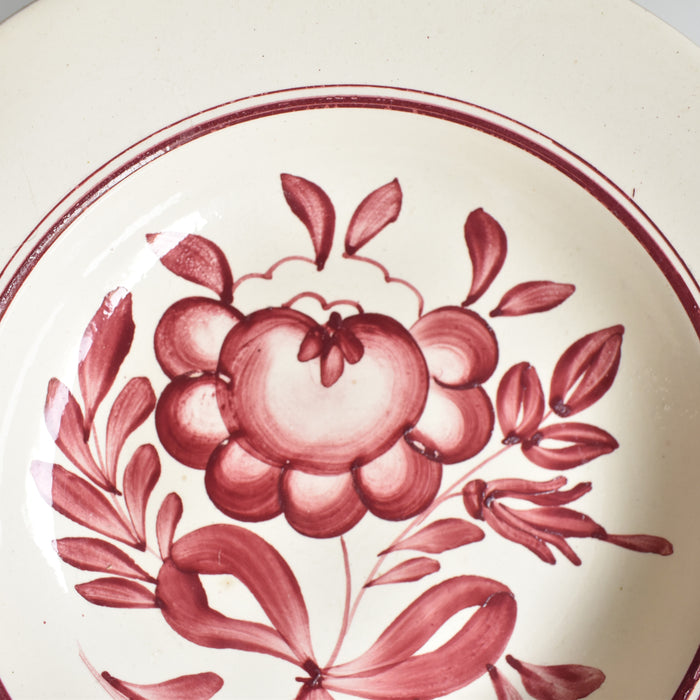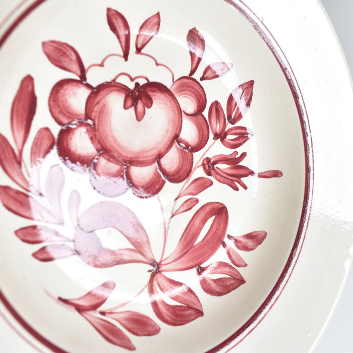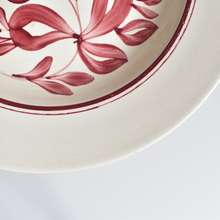 クリーム色の深皿にハンドペイントで赤い花が描かれていています。