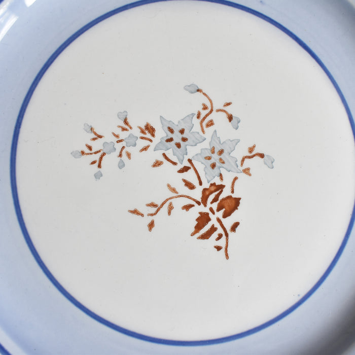 見込みと縁にハンドペイントされたステンシルのお花が、青い線によってさらに美しく引き立てられています。