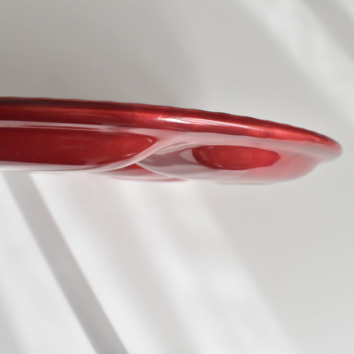 濃いレッドカラーに丸いレリーフが施され上品な雰囲気です。