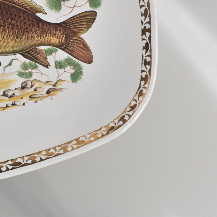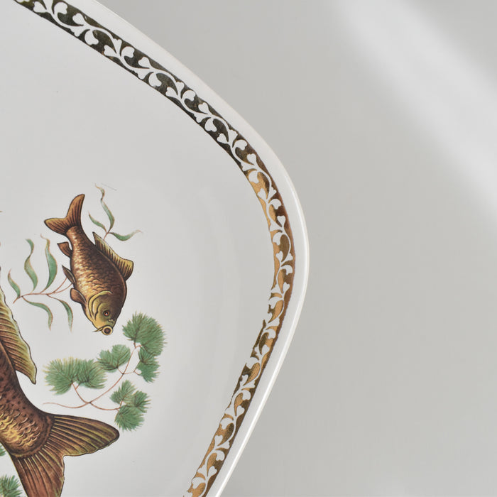 四角いプレートの縁には、水草や海藻柄の金彩が施され生き生きと描かれた魚を、美しく取り囲みます。