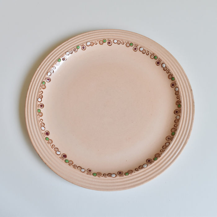 優しいピンク色と、シンプルなフォルムが調和するプレート。レリーフはストライプで空間を引き締めます。