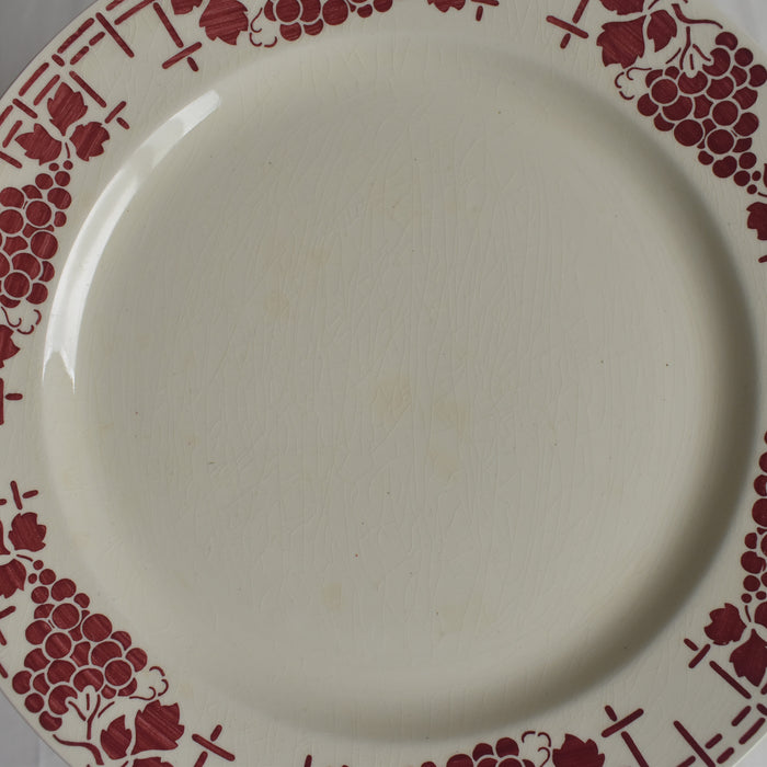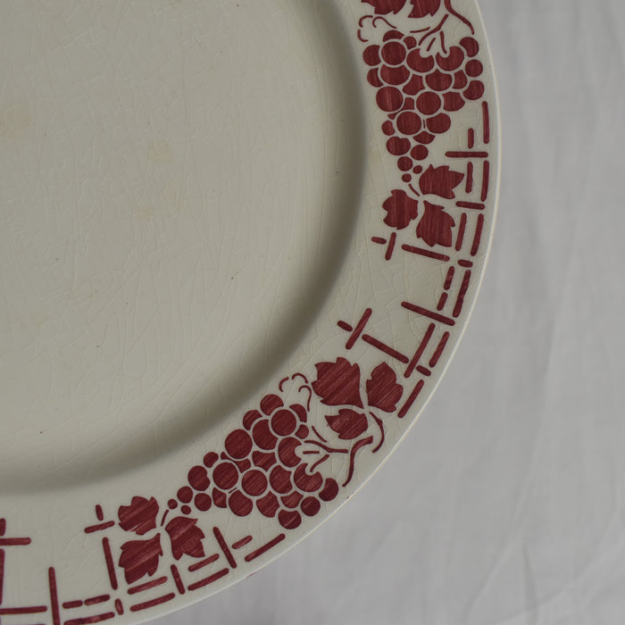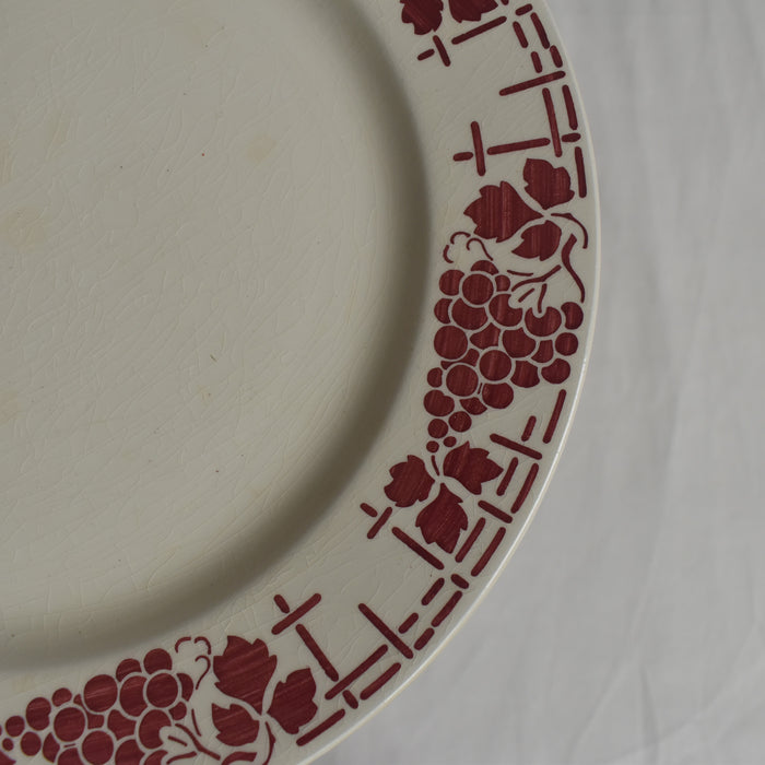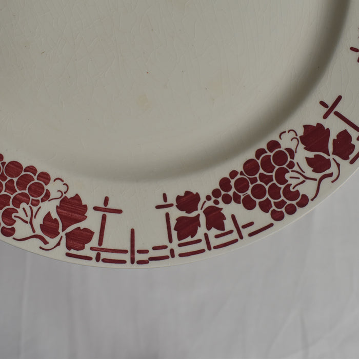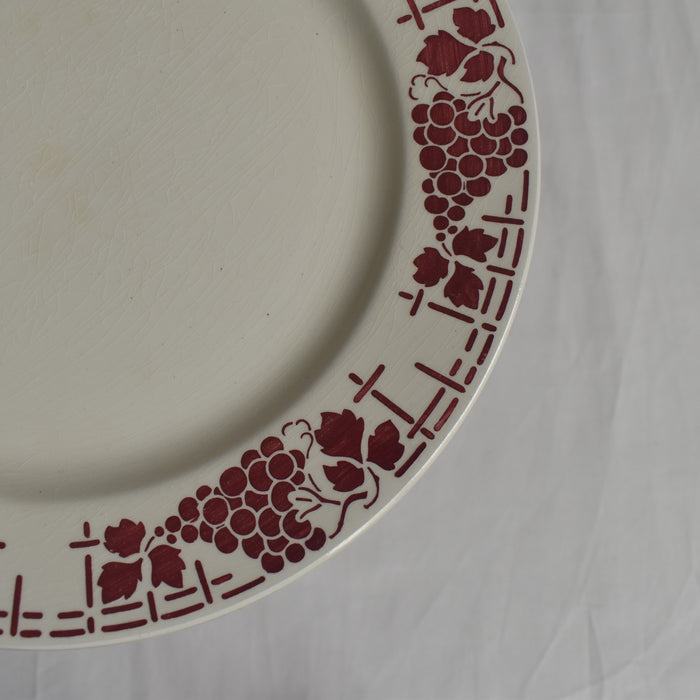 たっぷりの大粒の葡萄がステンシルされ、ブルゴーニュ地方の広々とした葡萄畑を彷彿とさせます。色のグラデーションが奥行きを感じさせ表情豊かなヴィンテージプレートです。
