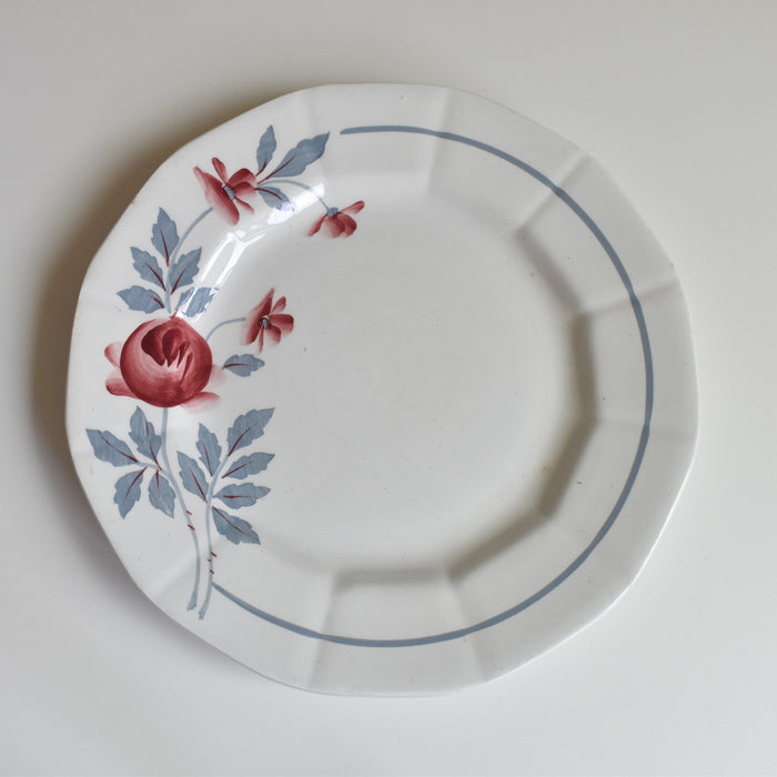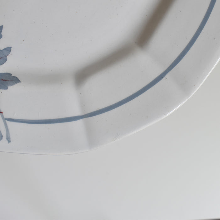 手書きの赤い花がステンシルの青い葉っぱとマッチしてとても素敵なプレートです。