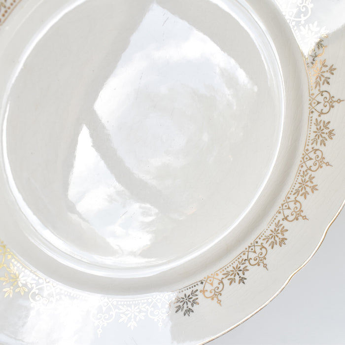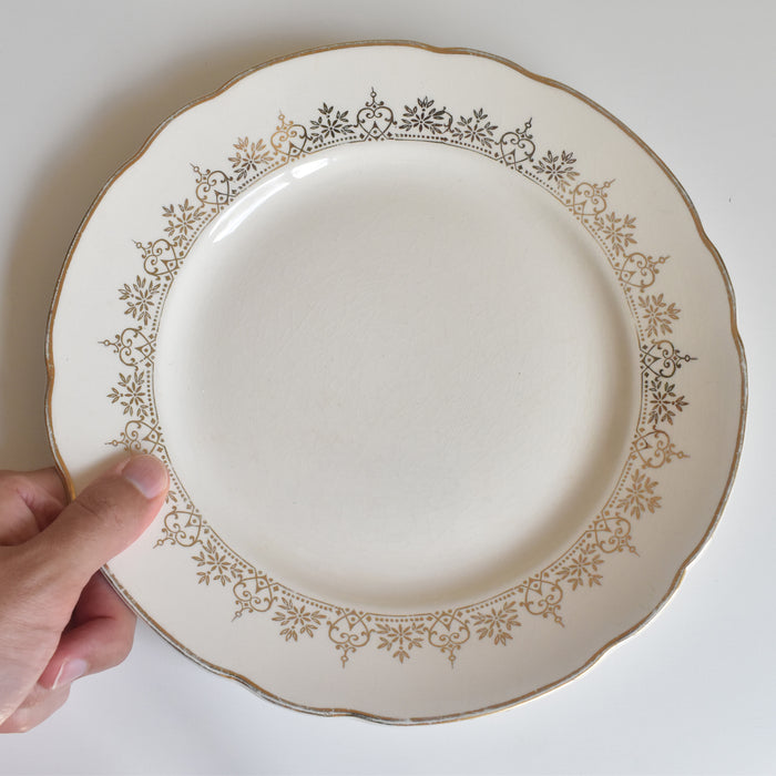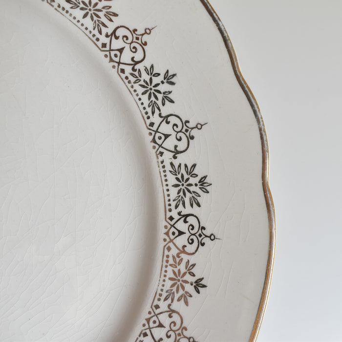 金彩で描かれた細やかで美しいガーランド模様。少しクリーム色がかったプレートとゴールドのコンビネーションが上品です。