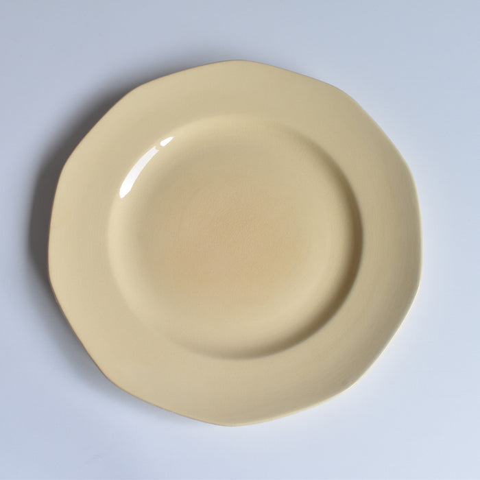 クリーム色のとてもシンプルな10角形のお皿です。