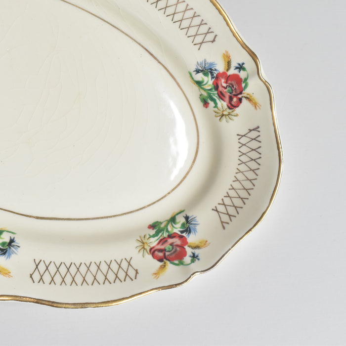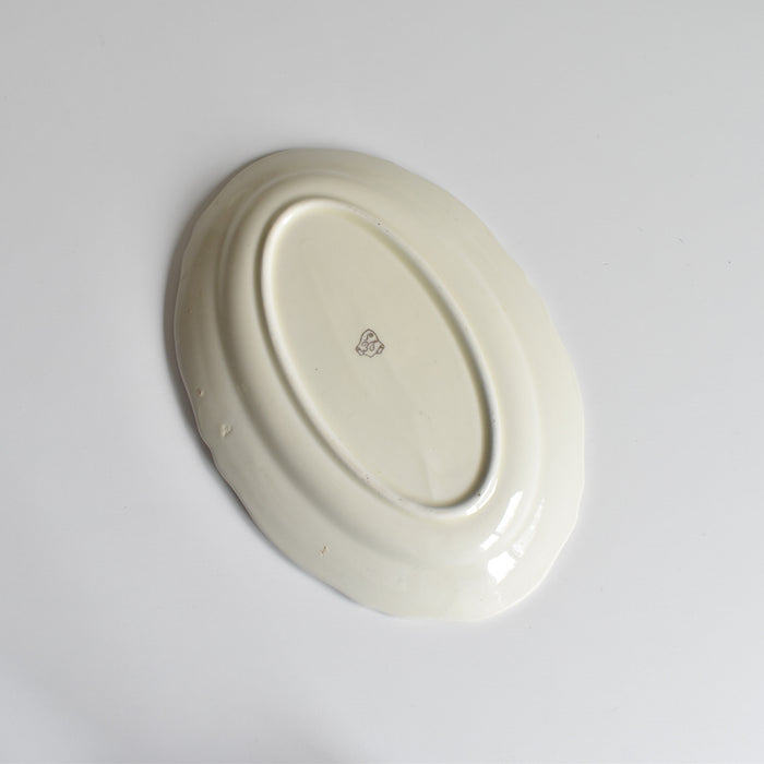 縁は波打つスカラップ形状で、アンティークらしい優雅さを演出しています。