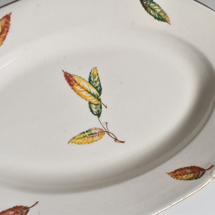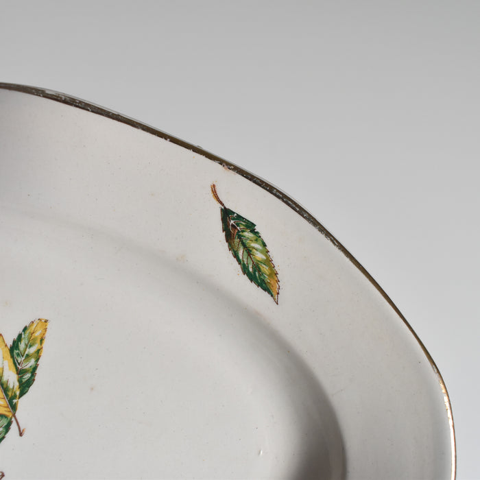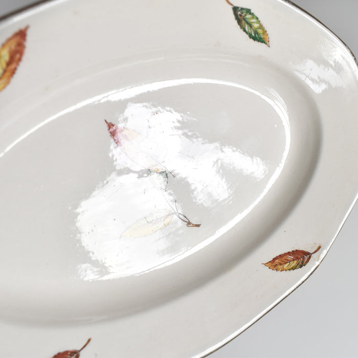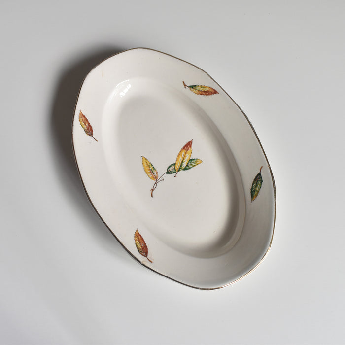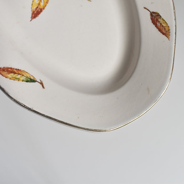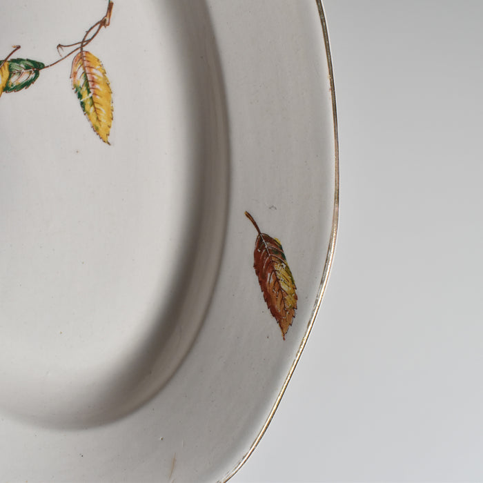 枯れ葉のモチーフが秋から冬の季節によく合います。色の移り変わりが美しい小さな落ち葉が、風に乗ってそっとお皿にのったようです。