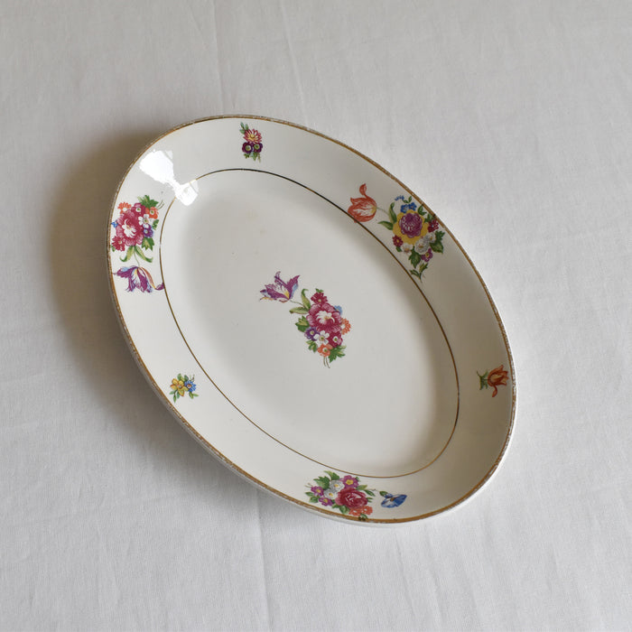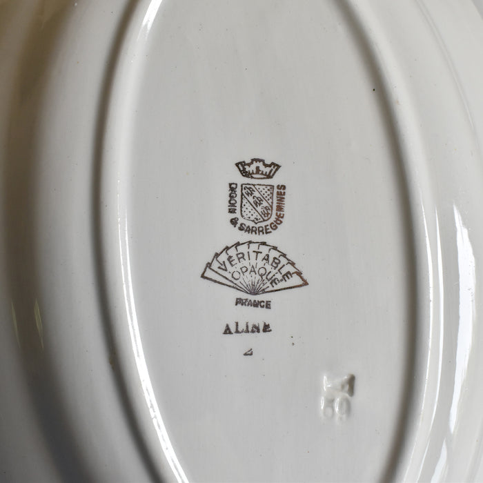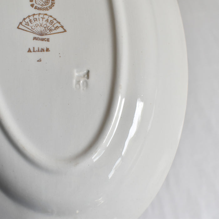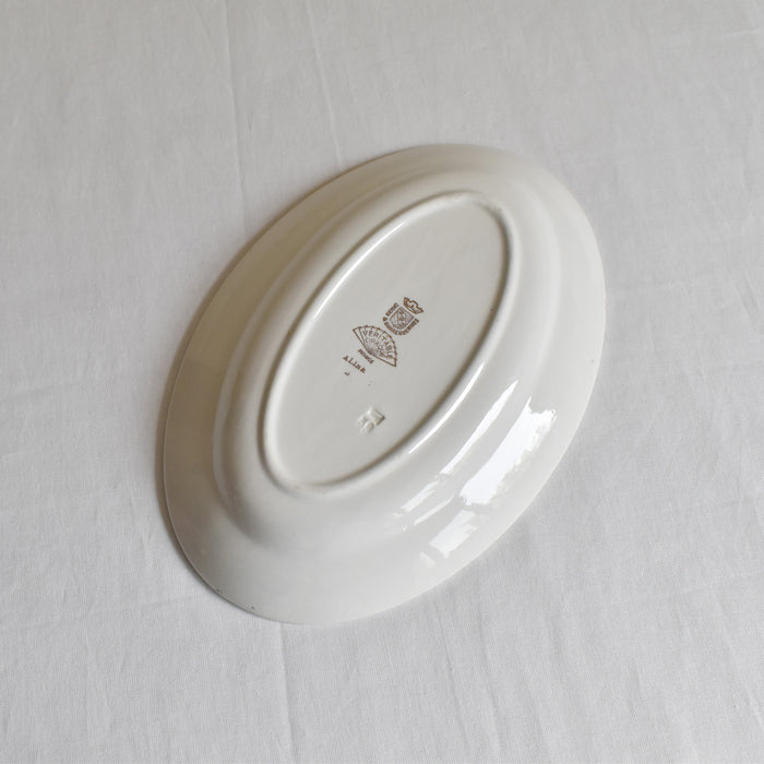 小さなカトラリ跡や薄くシミがありますが、欠けやひびはなく状態のいいプレートです。