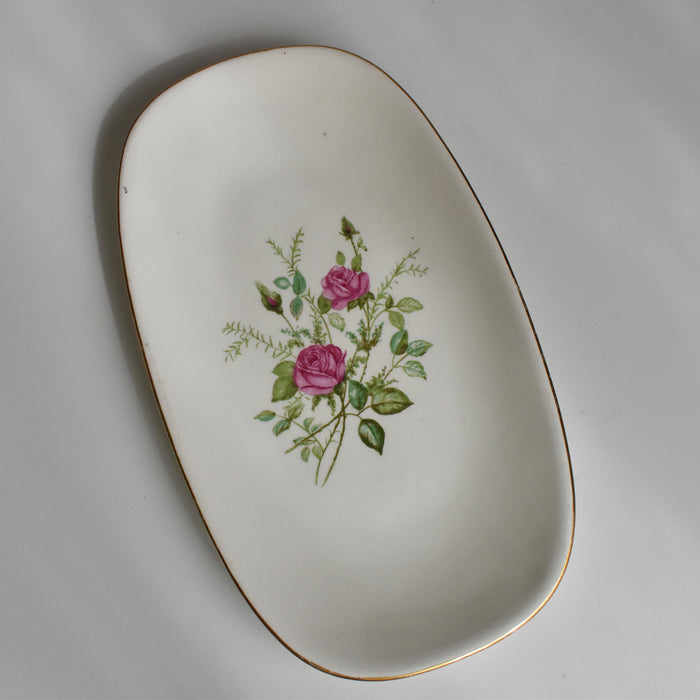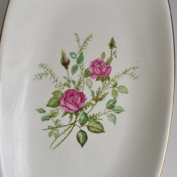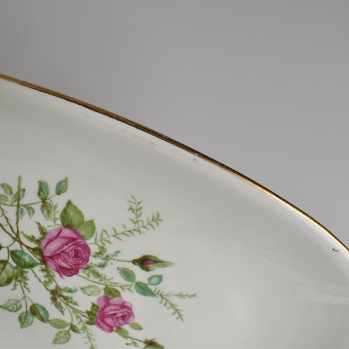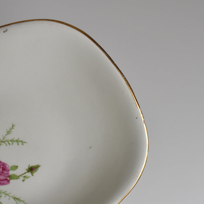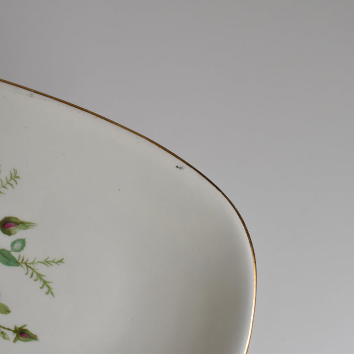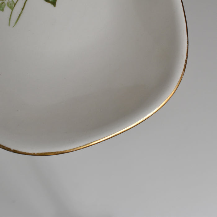 縁が金彩で見込みにローズパンパドゥールと思われるバラが描かれています。