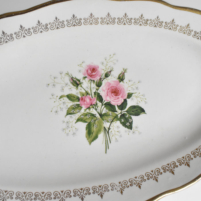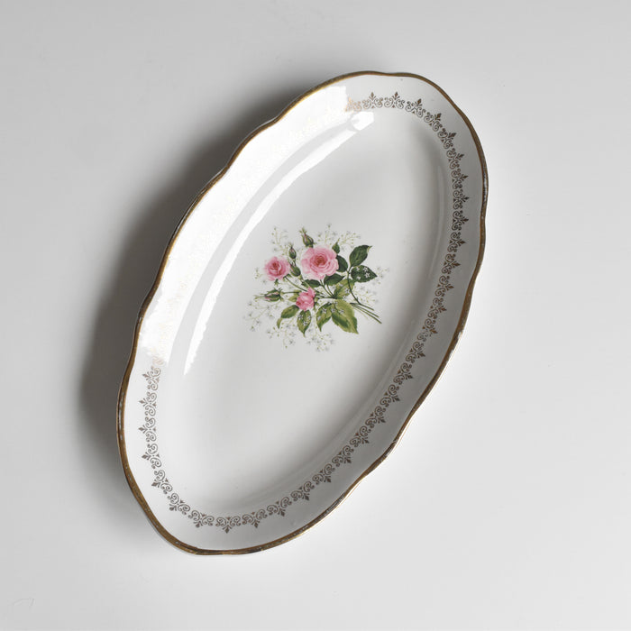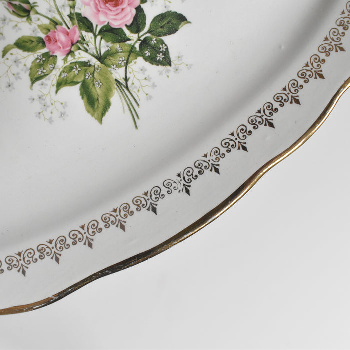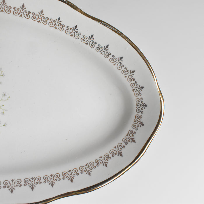薔薇と霞草のプリントを取り囲む、金彩のガーランドが素敵なラヴィエ。可憐さに程よく華やかさが加わった美しいラヴィエです。