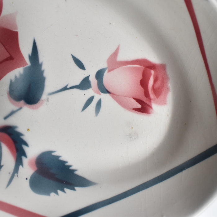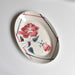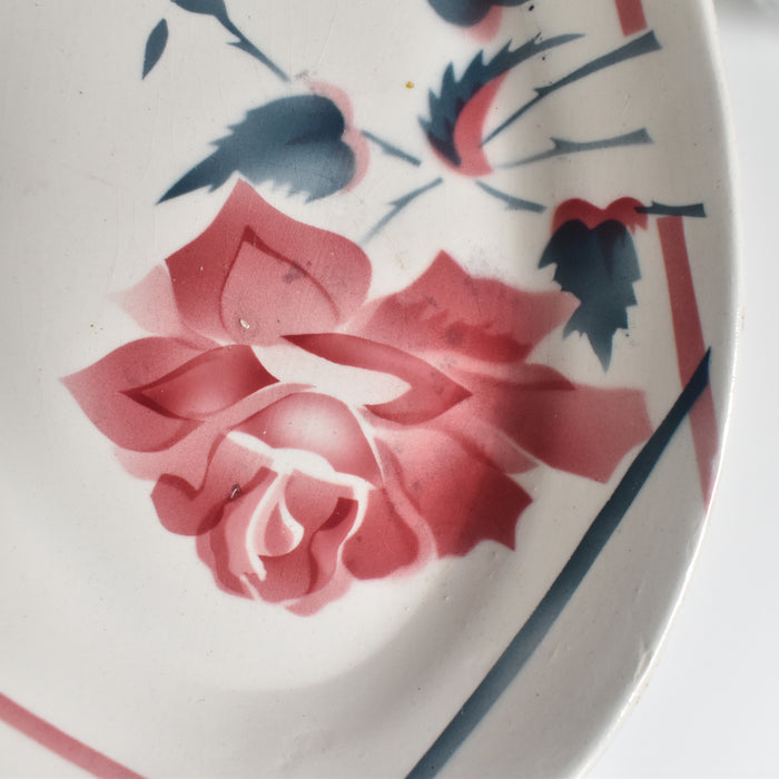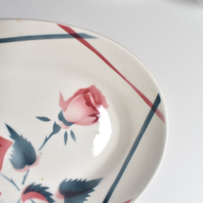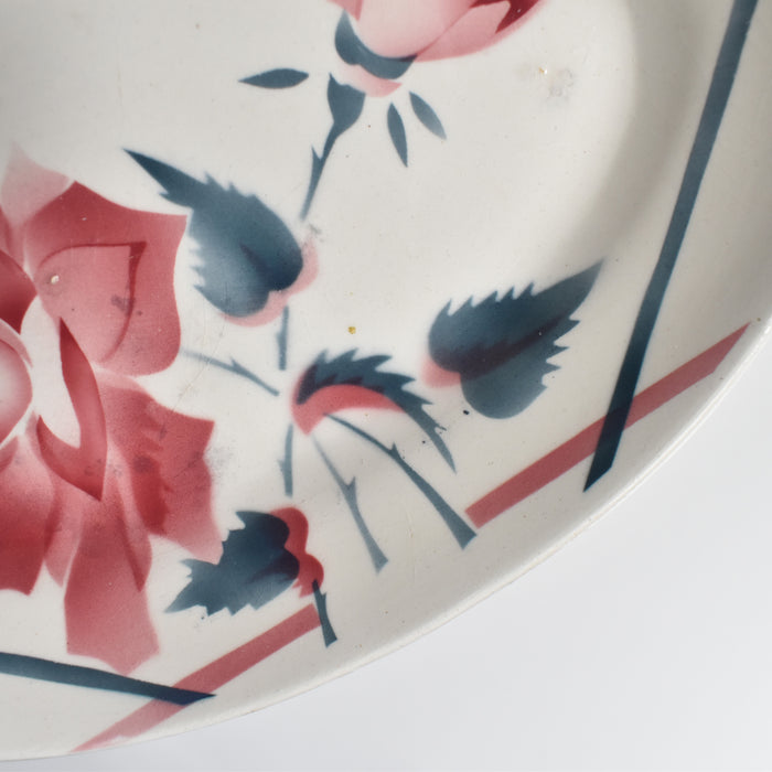 赤と青緑で描かれたステンシルのバラが大きく広がるモダンな雰囲気のラヴィエです。